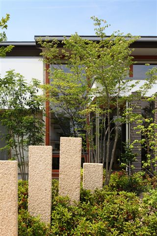 石造りのお庭、緑の木々は 自然な佇まいを醸し出します